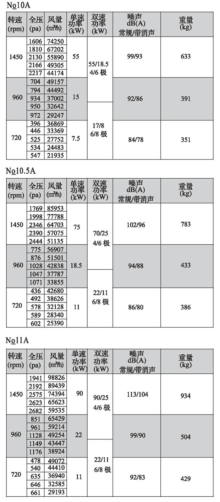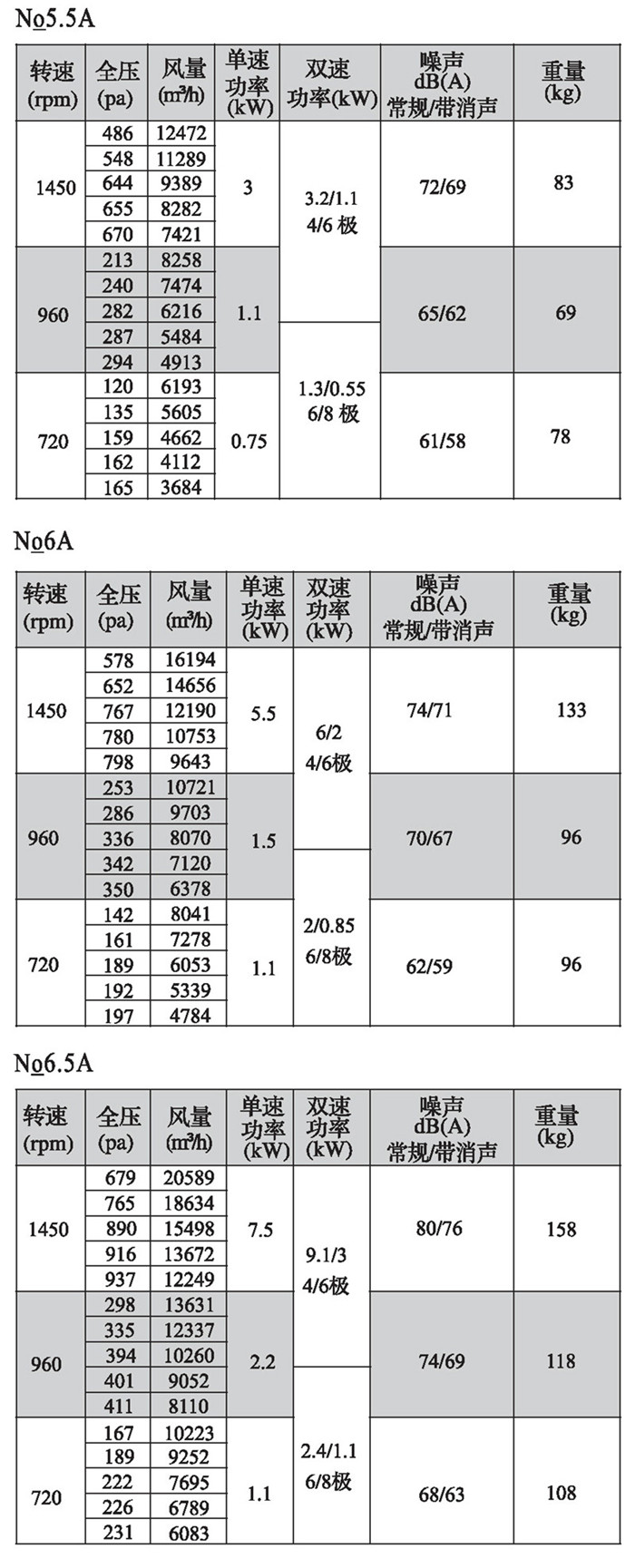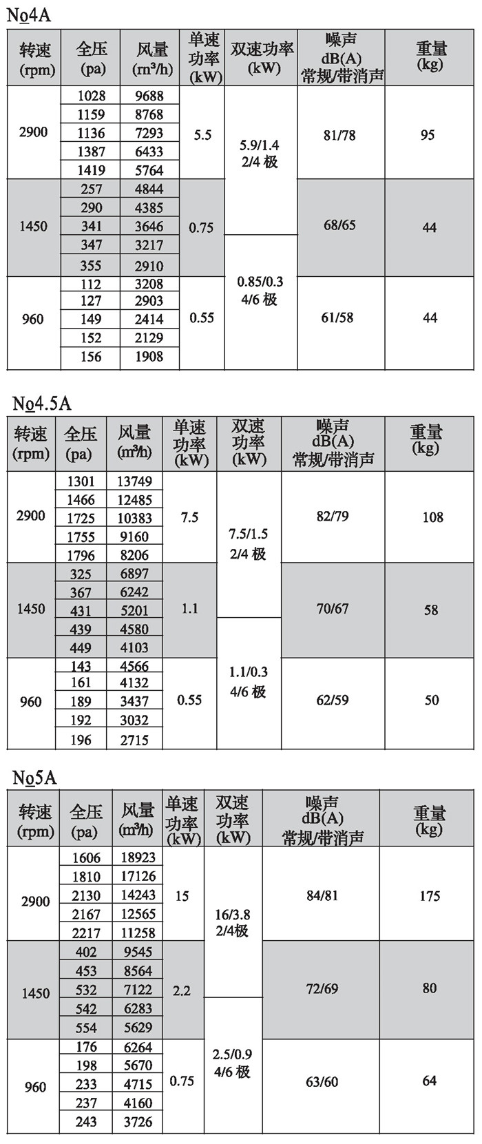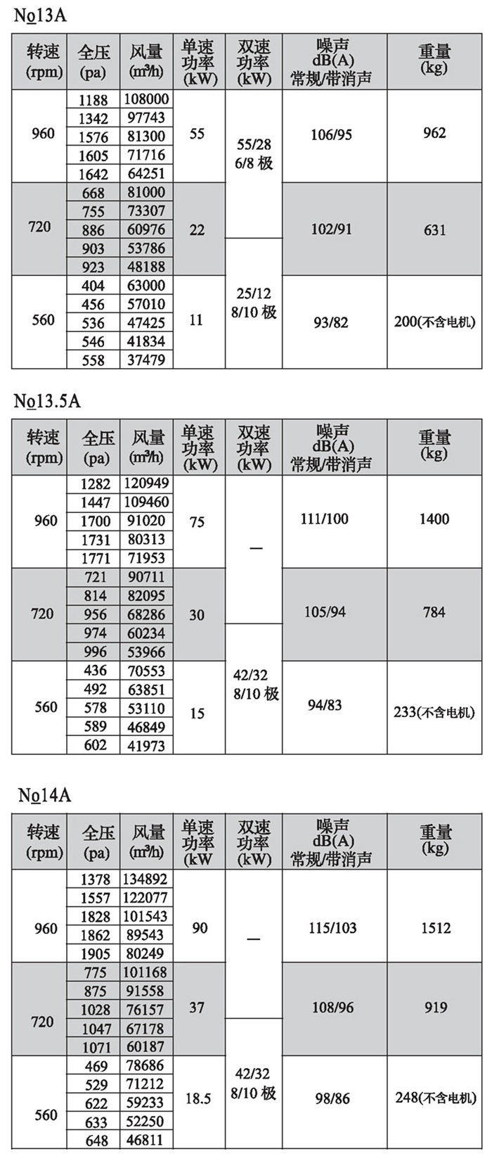注:雙速風機重量參考同號中高速風機的重量。