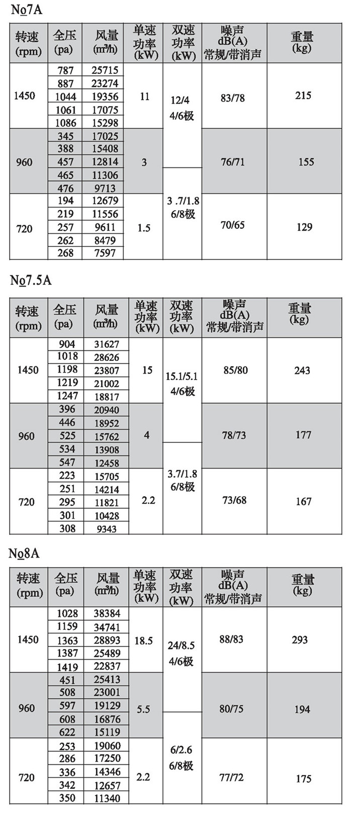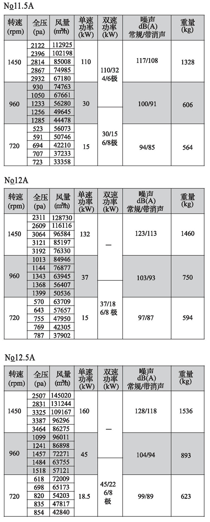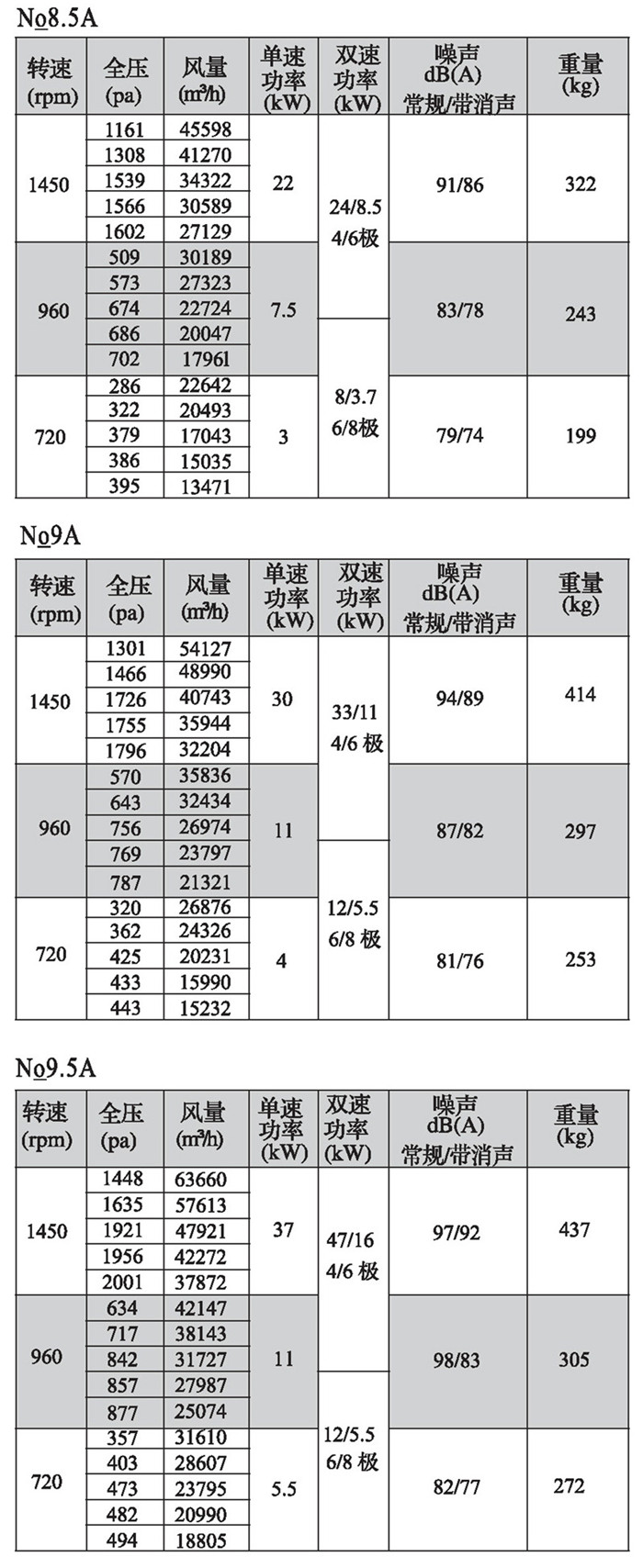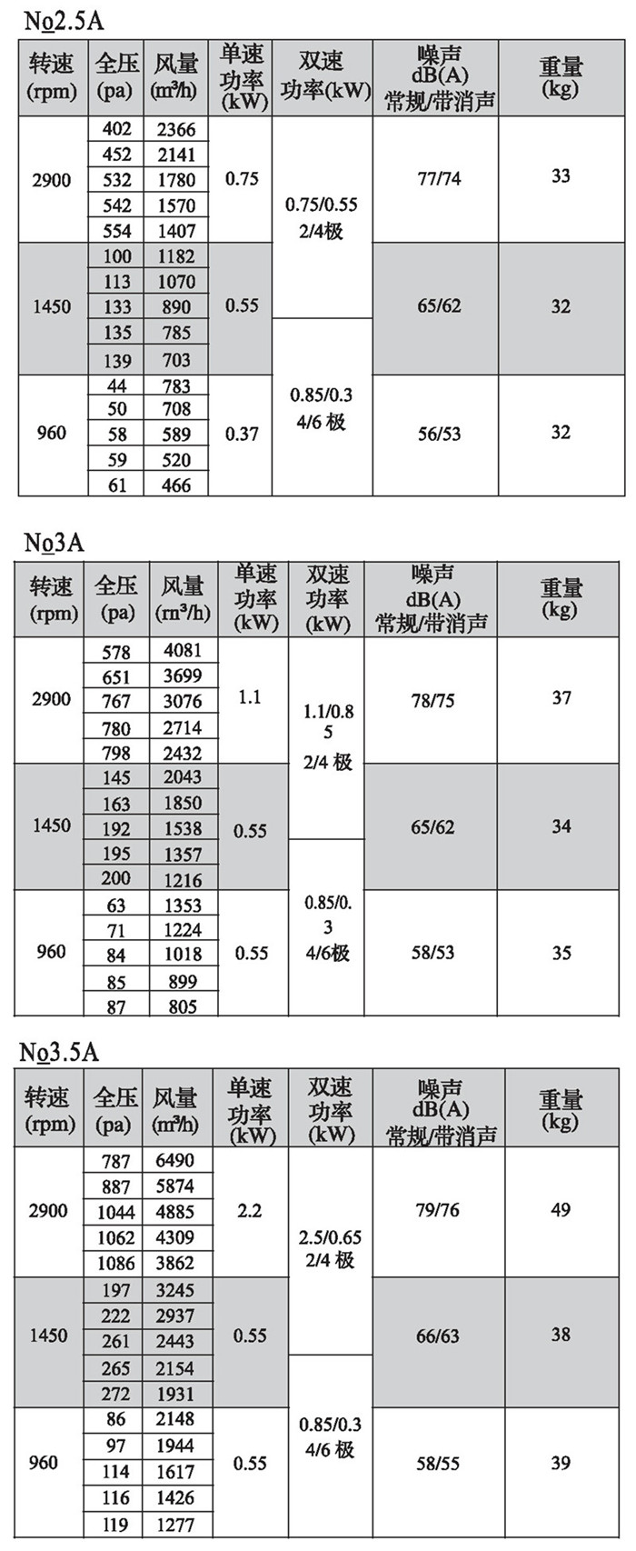 注:雙速風機重量參考同號中高速風機的重量。