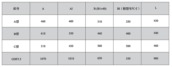 注: A型、B型、C型三檔規(guī)格的尺寸以風量為依據,詳見性能參數.